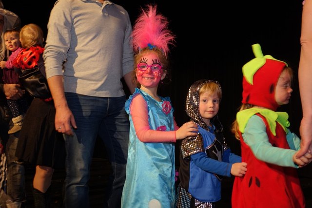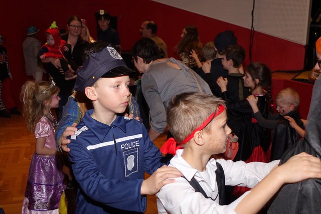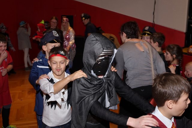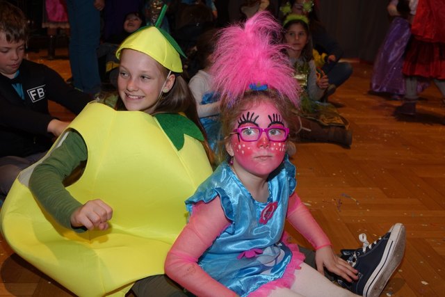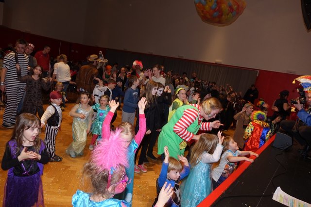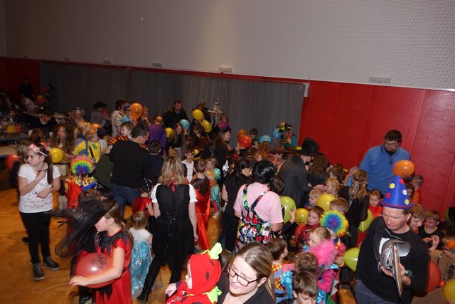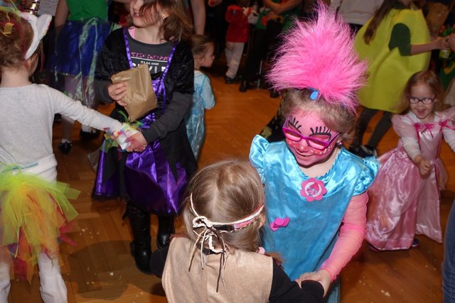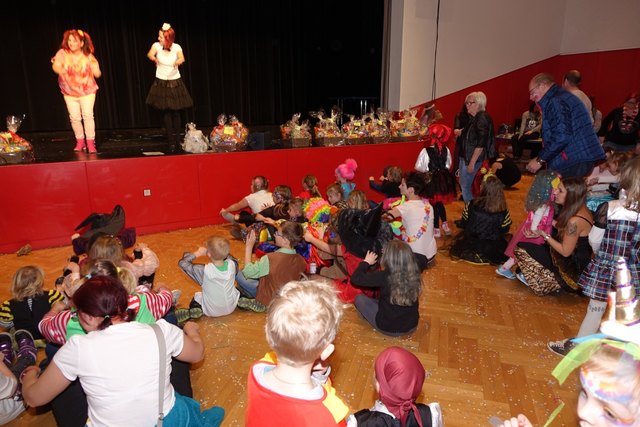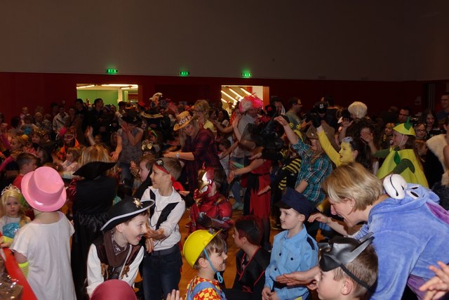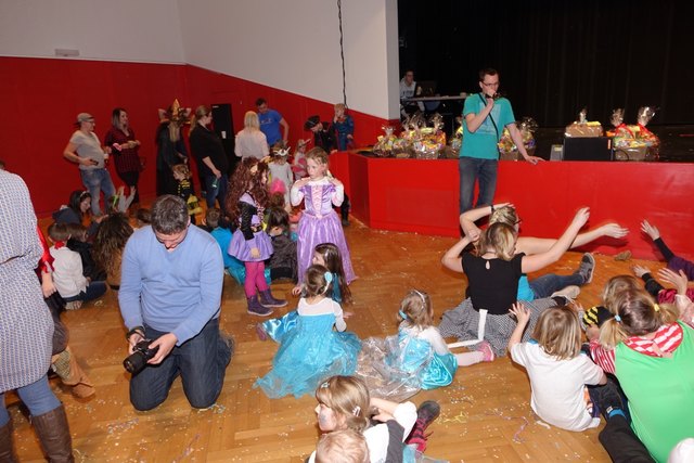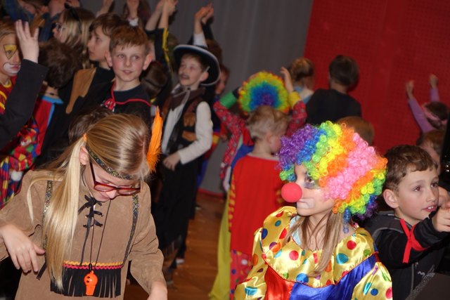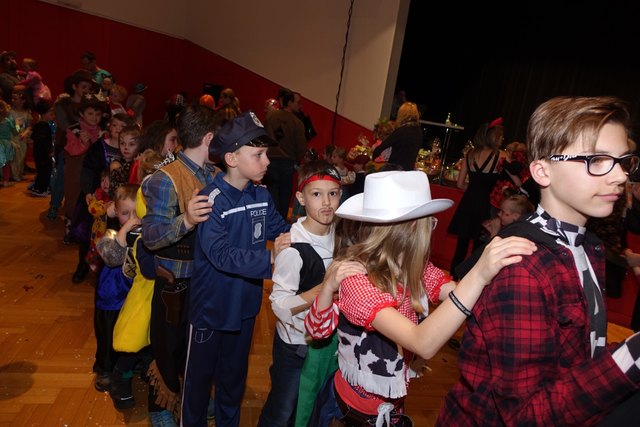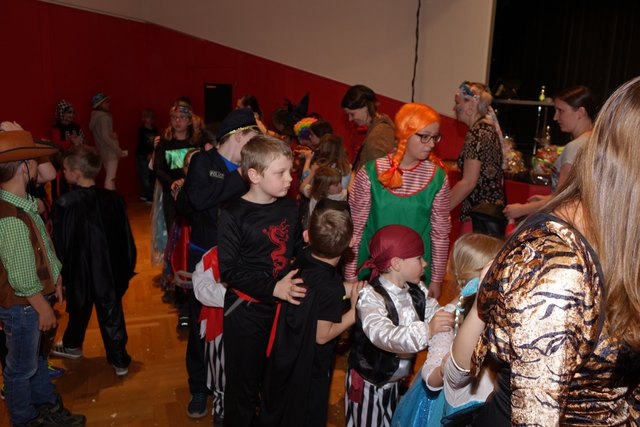 Ebenfalls fixer Bestandteil der Veranstaltung war die Polonaise über die Bühne, an deren Ende die bunt kostümierten Kinder als Belohnung mit Getränken und Krapfen versorgt wurden.