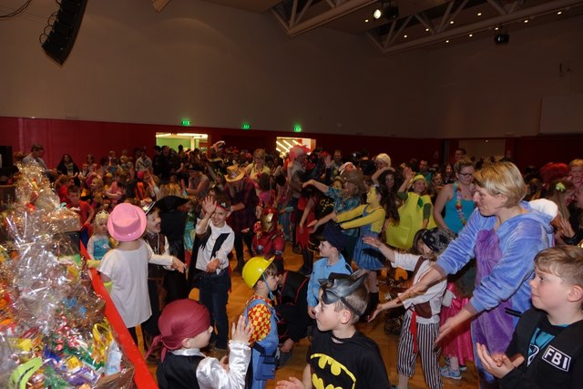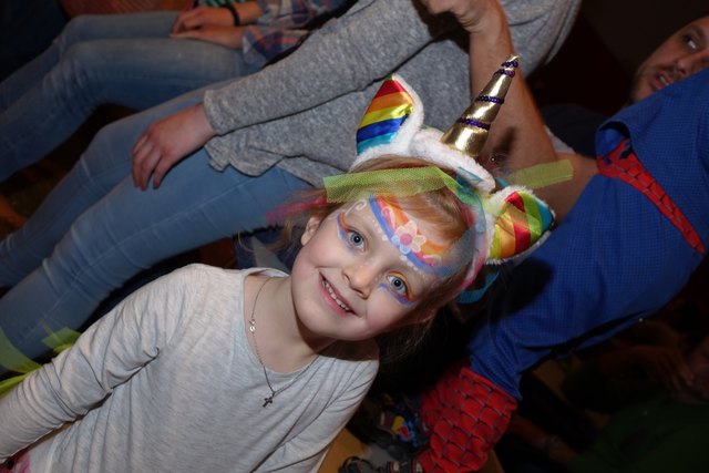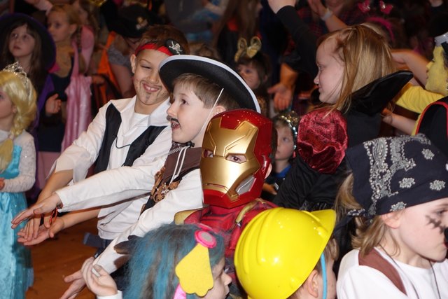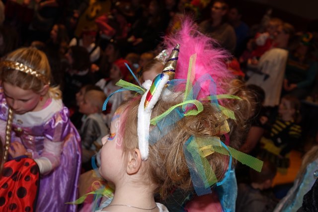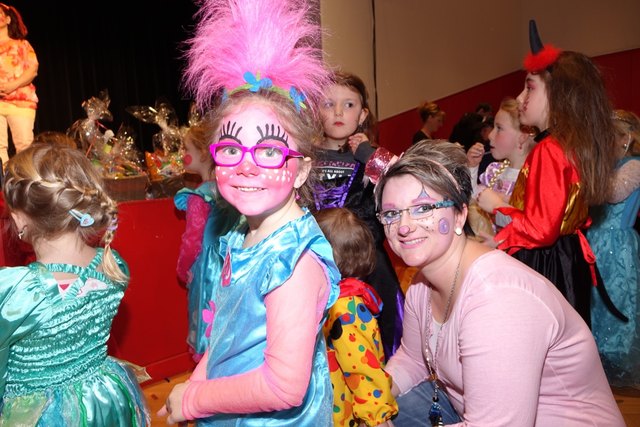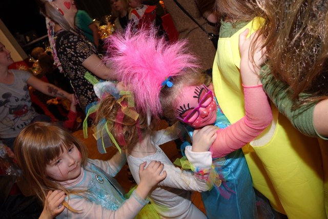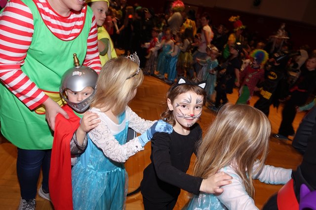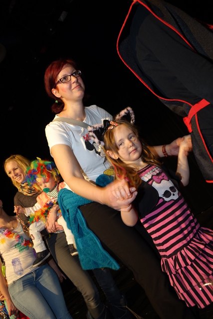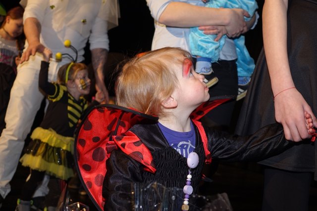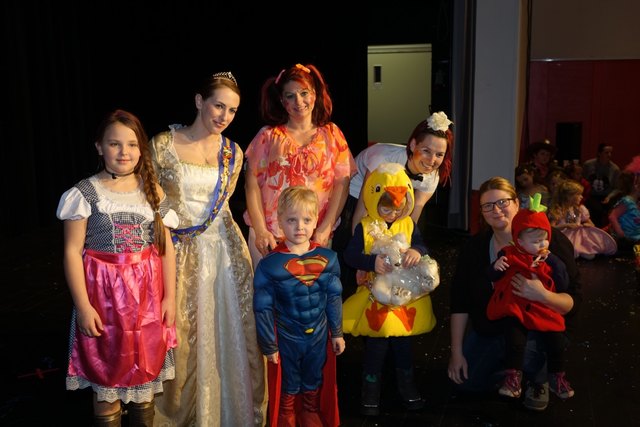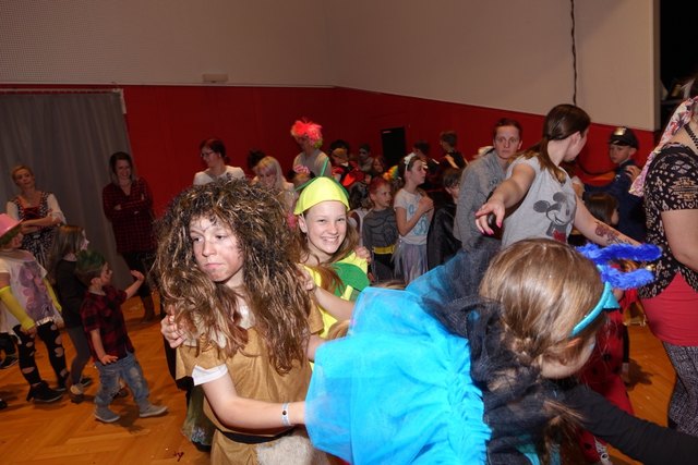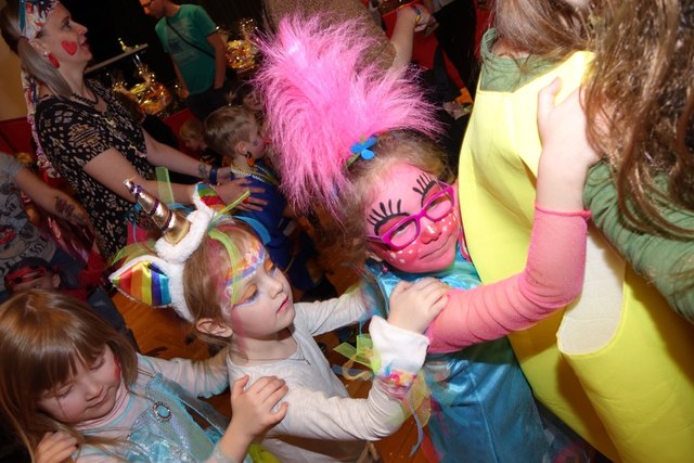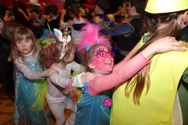 Ebenfalls fixer Bestandteil der Veranstaltung war die Polonaise über die Bühne, an deren Ende die bunt kostümierten Kinder als Belohnung mit Getränken und Krapfen versorgt wurden.