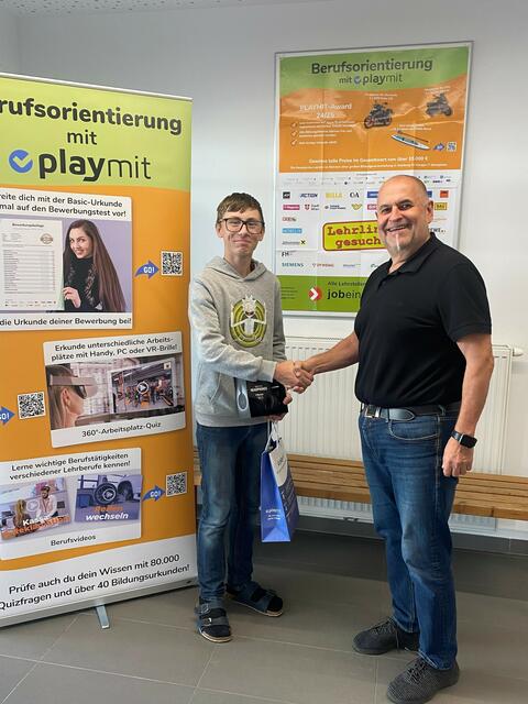Während der Messe hatten die Schülerinnen und Schüler die Möglichkeit, an den verschiedenen Messeständen durch die richtige Beantwortung von Fragen Playmit-Punkte zu sammeln und ihr Wissen über regionale Handwerksbetriebe zu vertiefen. Daniel Sattler erzielte die meisten Punkte (221) und setzte sich damit deutlich von den anderen Teilnehmenden der Messe-Rallye ab. Weitere „Gewinner“ der PTS Ternitz – Nico Liehsbauer (216 Punkte), Nicole Pöter(89 Punkte), Martin Luif und Agron Sadiki. Die Veranstaltung würdigte nicht nur diese herausragenden Leistungen, sondern auch das Engagement aller Schülerinnen und Schüler, die mit Fleiß und Motivation ihre berufliche Zukunft aktiv gestalten. Herzlichen Glückwunsch an alle Gewinnerinnen und Gewinner!