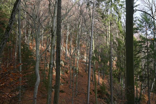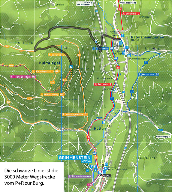 Ich wollte danach am Rückweg nicht wieder auf der Straße gehen, sondern über Waldwege nach Grimmenstein kommen, was nicht so einfach war, da es nur Hinweistafeln "zur Burg" gibt, fand den Weg aber zufolge der guten alten Markierungen, zuerst rot dann blau.