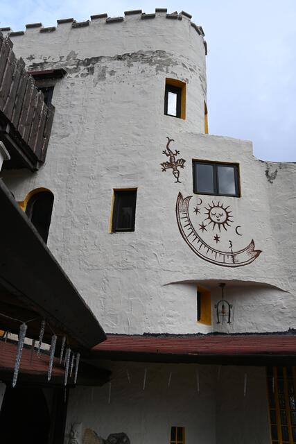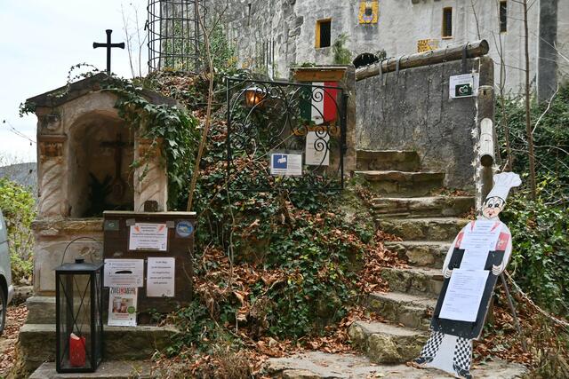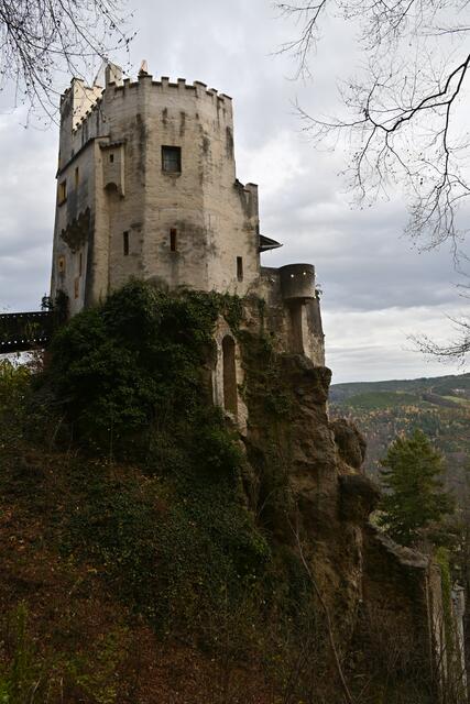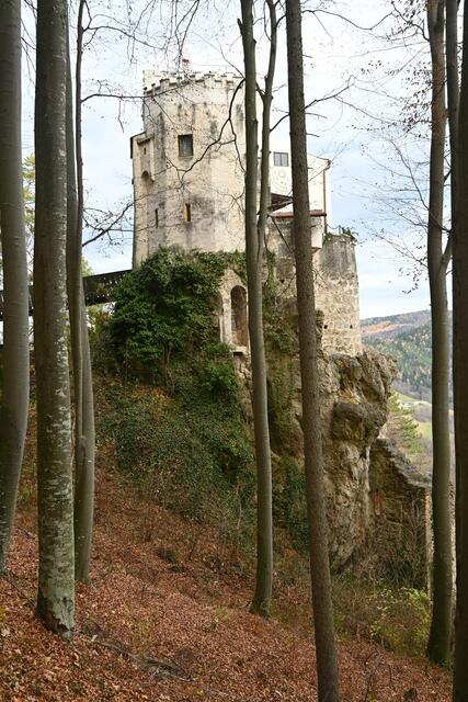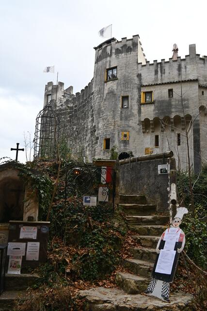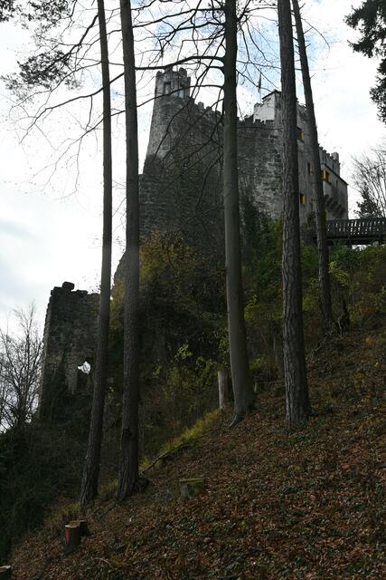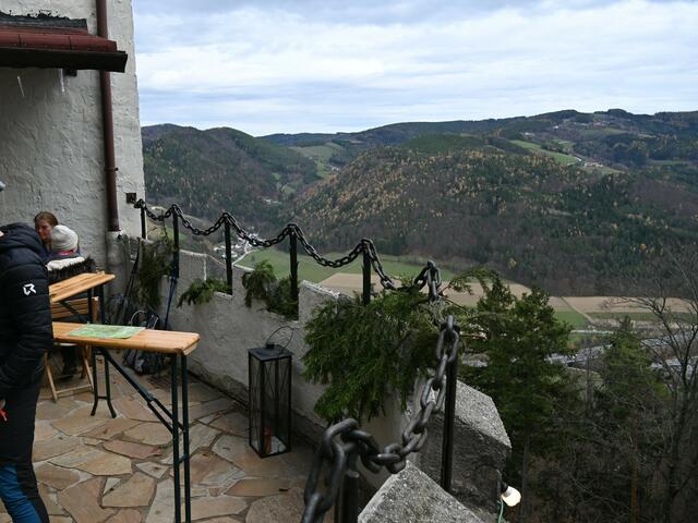 Letztes Wochenende hatte ich mir vorgenommen die Burg Grimmenstein zu erstürmen. Der beschilderte Zugang ist von Petersbaumgarten, vom P+R Parkplatz oder Bahnhof (Zug fährt von Wr. Neustadt alle Stunden), oder dann vom für Burgbesucher vorgesehenen eher kleinen Parkplatz weiter oben, diesen sollte man nutzen, da es keine Parkmöglichkeiten am weiteren Weg hinauf mehr gibt (wo Möglichkeiten wären wurden Parkverbotstafeln aufgestellt). Das heißt aber auch , dass man bis zur Burg zumeist auf der Asphaltstraße hatschen muss, was für Wanderer nicht so optimal ist, ich traf dann auch Leute, die Wanderwege durch den Wald suchten. Auf der Burg angekommen gibt's dann aber versch. Punsch ,Folienkartoffel und Würstel- nur noch dieses Wochenende bis 1.Dez..