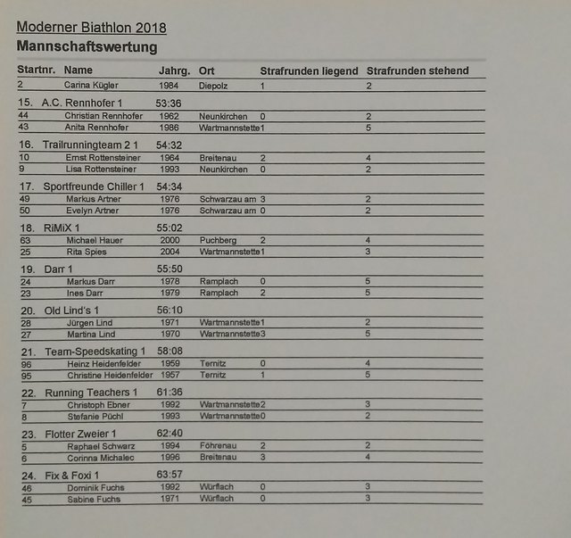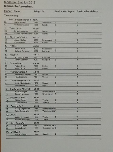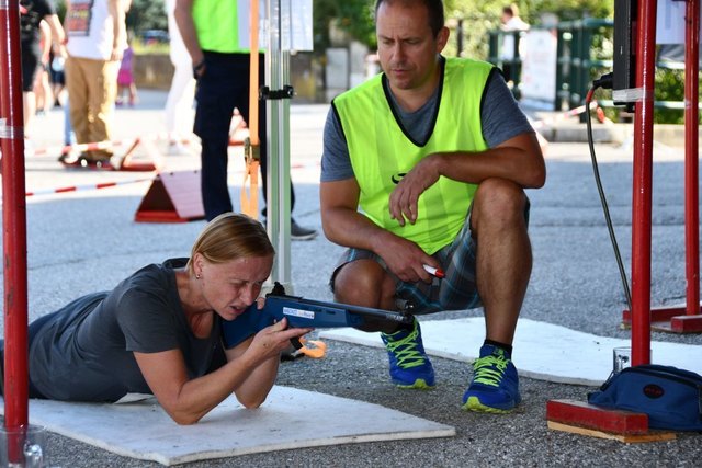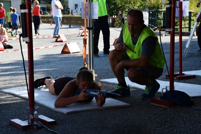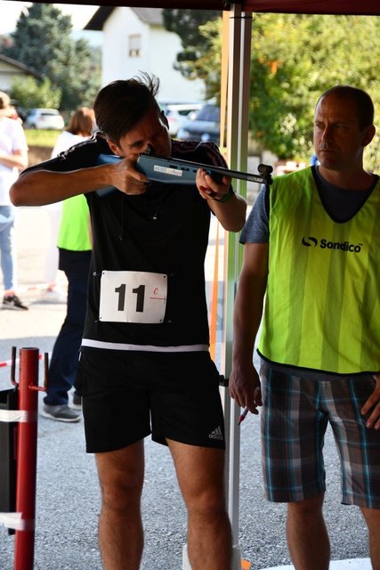 Am 15. September 2018 fand heuer zum zweiten Mal dieser einzigartige Sportevent statt. 99 Starter aus 7 Bezirken und 2 Bundesländern hatten sich für diesen Bewerb angemeldet. Mitzubringen war lediglich eine Laufausrüstung, denn die professionellen Lasergewehre wurden vom Veranstalter zur Verfügung gestellt. Die geniale Kombination aus Lasergewehrschießen und Laufen ermöglichte es den Teilnehmern ihr Können und Geschick unter Beweis zu stellen. Der Start des ersten Läufers erfolgte um 15:00 Uhr, wobei alle 90 Sekunden der nächste Athlet die Verfolgung aufnahm. Es war spannend und immer wieder kratzte man an der vorläufigen Bestzeit von 18:33 Minuten, die die Startnummer 1 vorlegte, welche schlussendlich doch nicht zum Sieg reichte. Alle Starter bemühten sich die 2x2 Kilometer lange Laufstrecke unterbrochen von 1x liegend und 1x stehend Schießen im Rekordtempo zu absolvieren. Die Verantwortlichen und ihre freiwilligen Helfer bemühten sich einen reibungslosen Ablauf dieses aufwendigen Bewerbes sicherzustellen. Obwohl der Streckenrekord vom Vorjahr unangetastet blieb, waren die Leistungen der Sportler überragend und daher die Zeitabstände untereinander sehr knapp. Bei den Herren holte sich Herbert Heidenfelder (ATSV-Nurmi Ternitz) mit einer Bestzeit von 18:19 Minuten vor Thomas Hanickel (XS Power Team) den Tagessieg, den dritten Platz teilten sich Robert Dreu und Michael Zeisel. In einem Sekundenkrimi holte sich Iris Kerschbaumer in 24:58 Minuten vor Sandra Kerschbaumer (Muddy Team Bikers) und Eva Schnabl den Sieg in der Damenwertung. Bei den Single Mixed Teams konnten sich „Die Turboschnecken“ vor „Team 0815“ und „Physio Würflach“ durchsetzen. Auch eine Siegerehrung durfte nicht fehlen, bei welcher die besten Sportler handgefertigte Trophäen überreicht bekamen und ihren Sieg feierten. Die anderen Teilnehmer gingen ebenfalls nicht leer aus, denn im Ziel wartete für jeden Finisher eine Medaille. Im Anschluß wurde noch im Rahmen der After-Race-Party gefeiert. Eine dritte Auflage wäre allen ein großes Anliegen, denn wie heißt es sportlich so schön: Nach dem Rennen ist vor dem Rennen!