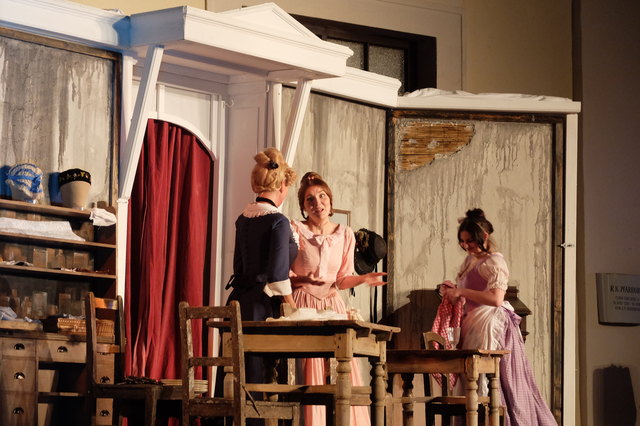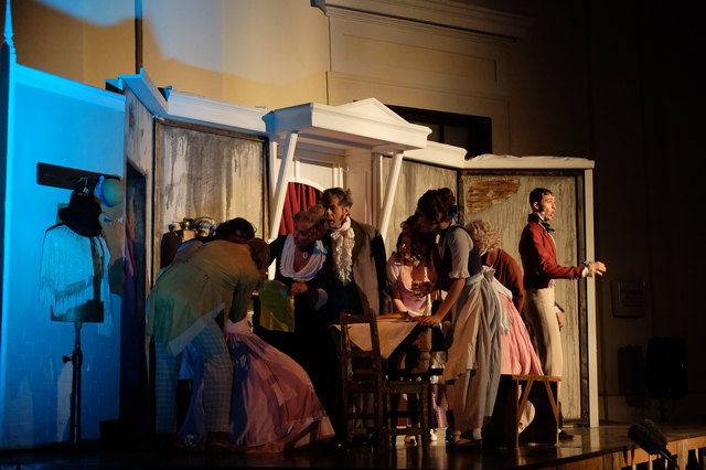 Spatzek inszeniert seinen Nestroy in historischem Gewand, und der Nestroy eigenen, wienerischen Sprache. Das ist ein Genuss für Augen und Ohren, der auch deshalb gelingt, weil in Parndorf vor und hinter der Bühne auf hohem Niveau gearbeitet wird! Für die Biedermeierkostüme verantwortlich zeichnet Barbara Langbein. Die akuraten Masken und Frisuren besorgte Barbara Demuth. Kristof und Florian Kepler zimmerten herrschaftliche Bühnenbilder und Peter Uwira saß am Keyboard zu den Couplets. Bei den Couplets folgte man der Tradition und änderte sie ein wenig zu würzigen Kommentaren auf gegenwärtige Ereignisse.
