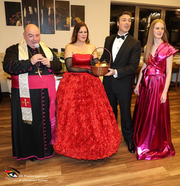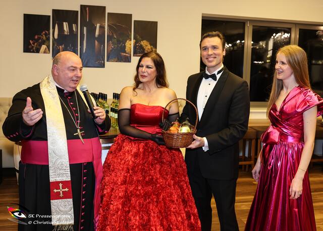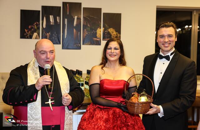 Im größten Weingut Österreichs fand gestern die Jungweintaufe statt. Der Abend begann mit dem Tenor Alejo Ruiz. Weiter ging es mit den Paten der Jungweine Natalia Ushakova und Thomas Weinhappel. Pfarrer Franz Brei nahm die Segnung vor und gab auch eine Showeinlage. Frank Bornemann begleitete am Klavier. Durch den Abend führte die charmante Katharina Baumgartner. Bei Pulkautaler Speisen ... Wildragout mit Serviettenrolle & Preiselbeerpfirsich, sowie gebackenem Gemüse ... konnten die Weine der Domäne verkostet werden. Danke für die Einladung und den schönen Abend... bei ausgezeichnetem Essen und guter Stimmung. Bericht: SK Presseagentur Sabine Kaiser Fotos: SK Presseagentur Christian Kaiser