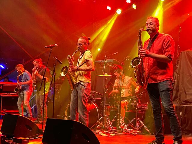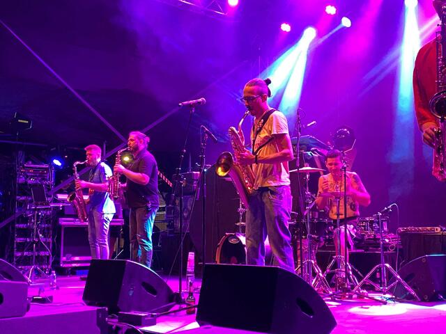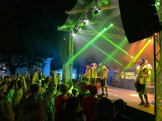 Mit typischen Balkan-Beats zwischen Reggae, Ska, Elektro-Pop. Und durchaus mit "Russendisko"-Flair. Die seit etwas mehr als 15 Jahren aktive Gruppe hat zahllose Alben veröffentlicht und lockte ihre Fans auf das ausverkaufte Festivalgelände. Als Vorgruppen agierten die genialen Techno-Vikings und - alte Freunde der KUGA - die Wiener Tschuschenkapelle. Die Eröffnung gewohnt traditionell mit der heimischen Tamburica-Gruppe Harmonija.
