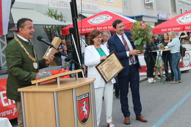 PERG. Maria Berger wurde zur Ehrenbürgerin ernannt – als erste Frau in der Stadt Perg. Erst kürzlich war eine Straße nach der SPÖ-Politikerin benannt worden - wir berichteten. Die studierte Juristin wirkte als EU-Parlamentarierin, Justizministerin und EU-Höchstrichterin. Bürgermeister Landtagsabgeordneter Anton Froschauer, der die Laudatio auf Berger hielt, wurde danach selbst geehrt: Der Stadtchef, der im August seinen 60. Geburtstag feiert, erhielt den Ehrenring seiner Heimatgemeinde. Die ehemalige SPÖ-Stadträtin Viktoria Frühwirth durfte sich für ihr Wirken in der Kommunalpolitik über die Ehrennadel in Silber freuen.