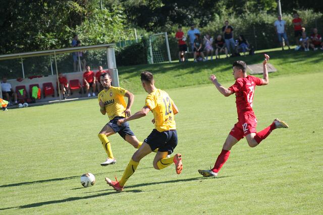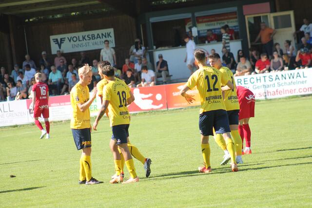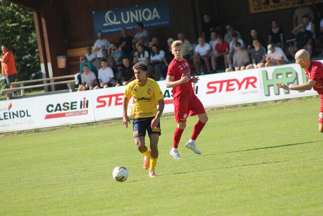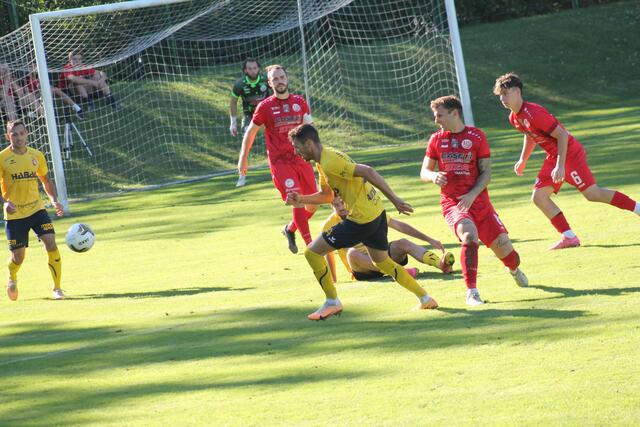 ST. VALENTIN, PERG. Cem Aygün hatte die Gäste früh in Führung geköpfelt (11.). Marco Bühringer drehte aber wenig später die Partie: Er traf zunächst aus kurzer Distanz mit dem Kopf (19.). Wenig später spitzelte er nach einem gewonnenen Laufduell den Ball über Perg-Schlussmann Simon Primetzhofer ins Tor (30.). Besonders bitter für die Gäste: Top-Spieler Mario Ebenhofer verletzte sich in der Anfangsphase am rechten Knöchel und musste ausgewechselt werden. Es sieht nach einer Bänderverletzung aus, eine genaue Abklärung folgt.