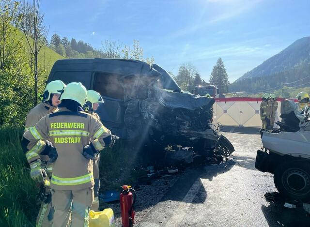 Samstagmorgen, den 11. Mai, kam es zu einem tödlichen Frontalzusammenstoß von zwei Kleintransportern auf der Ennstal-Straße, B320. Die Freiwillige Feuerwehr Radstadt war am Unfallort im Einsatz.