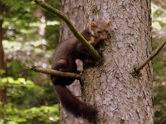 Der Baummarder ist ein Raubtier und gehört zur Unterfamile der "Hundeartigen". Kein Wunder, dass Momo so neugierig ist - vielleicht ist es eine Dame?!