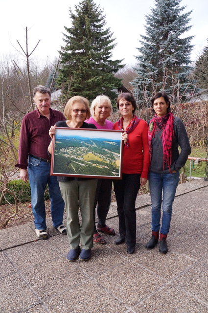 - Anrainer Sieglinde und Helmut Tötzl, Waltraud Paderta, Mathilde Schubert und Ilona Eggl zeigen ein Bild des betroffenen Siedlungsgebiets.