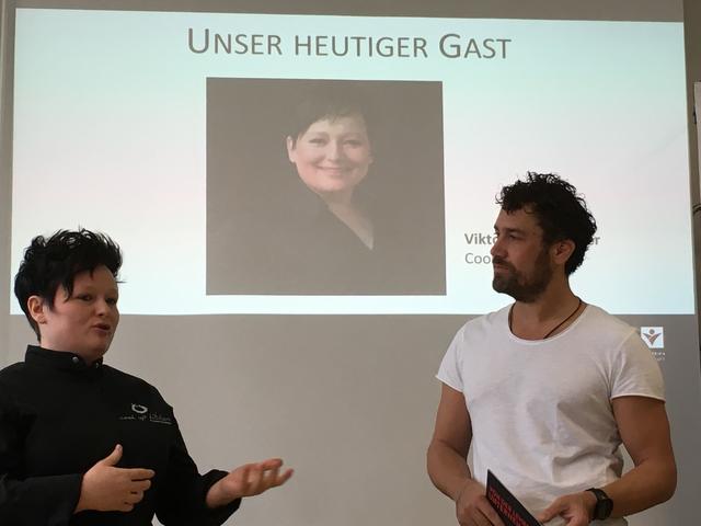 Die erste Unternehmerin im Bezirk Ried, die im Rahmen dieses Projekts „auf die Bühne“ geholt wurde, war Viktoria Stranzinger. Mit ihrer „Cook up kitchen“ – einer Kochschule mit Konzept und Herz – versucht sie ihre Leidenschaft, das Kochen, an andere weiterzugeben. Ihre Bühne war an diesem Tag eine Schulklasse an der NMS Geinberg. Vor versammelten SchülerInnen der 3. und 4. Klassen berichtete sie offen, natürlich und ehrlich über ihre Erfahrungen im Beruf und tauschte sich mit den Jugendlichen aus, die erst vor der Berufswahl stehen.