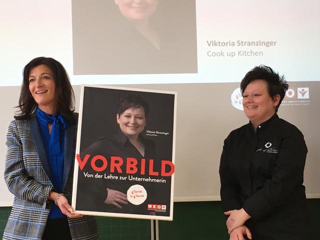 Kochgigantin Viktoria Stranzinger, ehemalige Schülerin der Polytechnischen Schule Geinberg, wurde am 19.11.2019 von der WKÖ als Unternehmerin des Jahres 2019 ausgezeichnet.