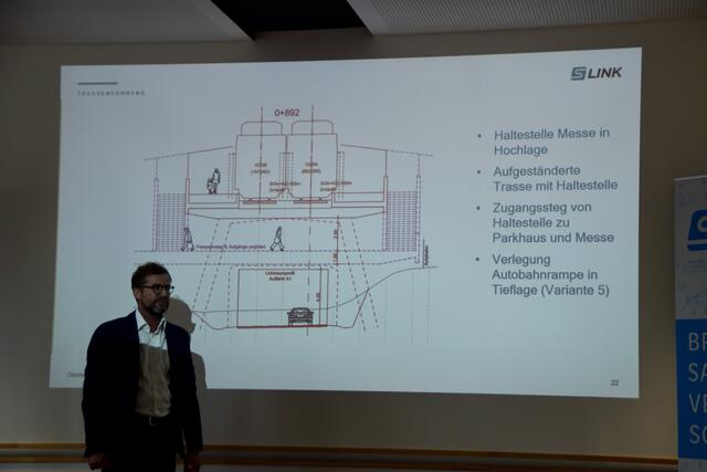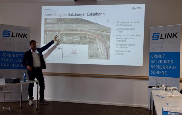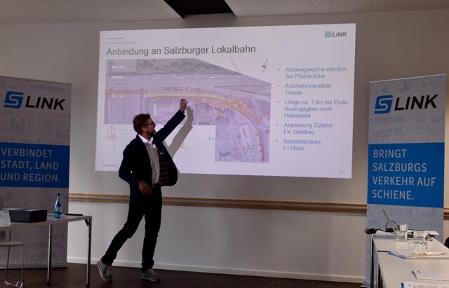 - Peter Knittel vom Projektteam TSS, erklärt die Anbindung der "Messebahn" an die Salzburger Lokalbahn.