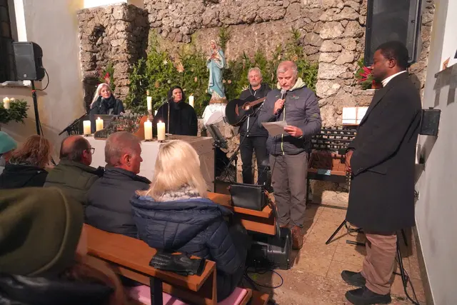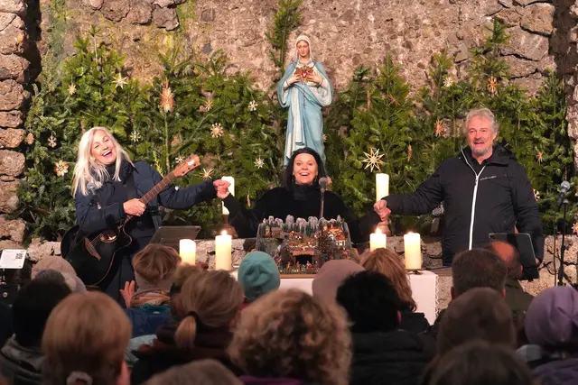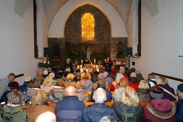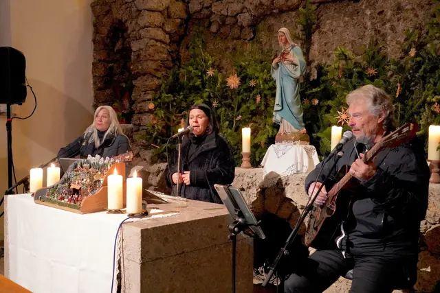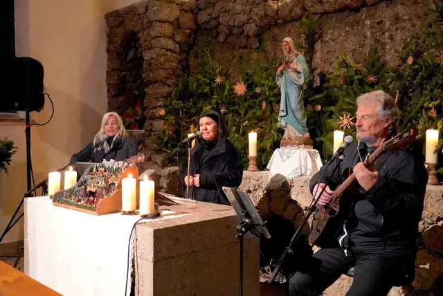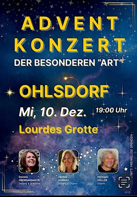 Es war wieder ein wirklich stimmungsvolles Adventkonzert am Mittwoch 10.12.2025 in der Lourdes Grotte Ohlsdorf. Daniela Obermayr, Daniela Konrad und Hermann Höller verzauberten mit ihren Stimmen und Instrumente die Besucher, darunter auch die Bgm. von Ohlsdorf Ines Mirlacher mit Gatten in der bis auf den letzten Platz belegten Kirche. Mit dem Ambiente vor und in der Lourdes Grotte kam richtige vorweihnachtliche Stimmung auf. Und mit dem Adventkonzert der wirklich besonderen Art mit den selbst geschriebenen Texten und Melodien zogen die drei Vollblutmusiker mit den bezaubernden Stimmen die Zuhörer voll in ihren Bann. Ganz besonderes besinnlich und in die Herzen gehend war das umgetextete Ave Maria von Daniela Konrad. Spätestens dann war man in der Vorweihnachtszeit angekommen und der Sinn von Weihnacht wurde bewußt!
