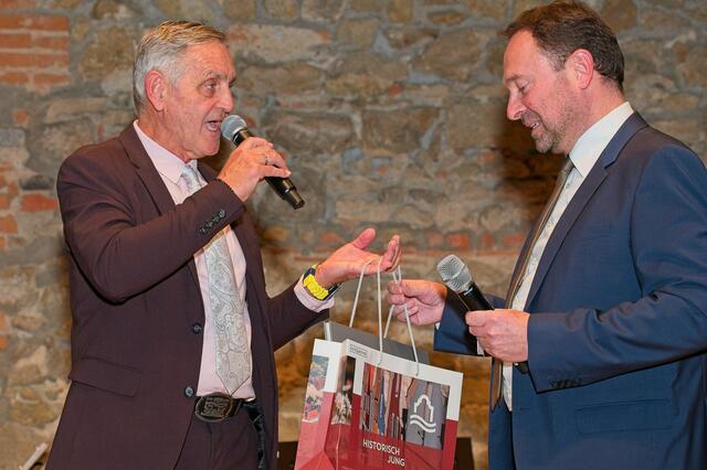 Zudem blickte Bürgermeister Günter Streicher auf einereignisreiches Jahr 2023 zurück und gab einen Ausblick auf 2024. Streicher beklagt, dass die Finanzausgleichsverhandlungen nichts gebracht haben, die Stadtgemeinde vom Steuerkuchen weiterhin nur 12 Prozent anstatt der geforderten 15 Prozent erhält. Für eine Abgangsgemeinde wie Schärding keine guten Nachrichten. Dennoch hofft Streicher auf den Beginn der Volksschul-Generalsanierung im heurigen Jahr, die acht Millionen Euro kosten wird. Zudem soll heuer noch die Seilergrabenbrücke saniert werden. Weiters am Programm steht die Stadtplatzbegrünung samt neuem Christopherusbrunnen. In einer herausfordernden Zeit sehen alle Beteiligten den Schlüssel zum Erfolg in der Zusammenarbeit, die laut Bezirkshauptmann Florian Kolmhofer und Bürgermeistersprecher Roland Wohlmuth auf allen ebenen bestens funktioniert. Als Abschluss des Talks wurde die Familie Holzinger sowie Günter Holzapfel mit dem Franz-Engl-Preis ausgezeichnet. Anschließend fand noch ein gemütlicher Ausklang bei Schnitzel, Bratl und Nudelauflauf statt.