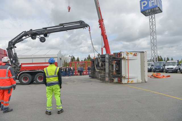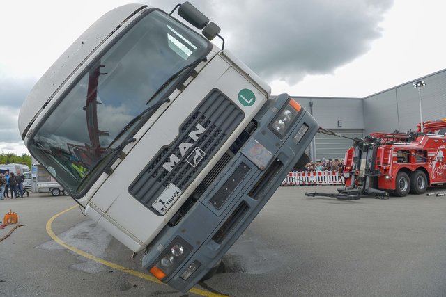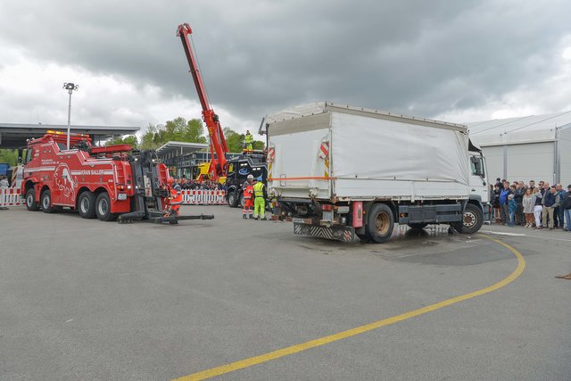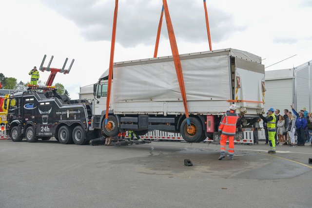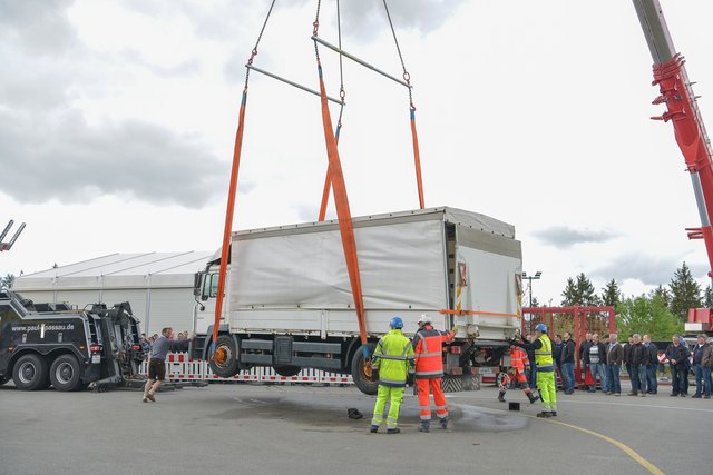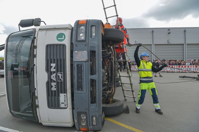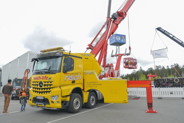 PASSAU (zema). Am 28. April eröffnete Nutzfahrzeuge Mercedes Paul in der Sperrwies in Passau für den 17. Truckerfrühschoppen seine Pforten. Die ersten Besucher aus Nah und Fern, aus Bayern und dem benachbarten Oberösterreich strömten in Scharren auf das Firmengeländeauf. Es waren viele unterschiedliche LKW´ s in Reih und Glied aber auch andere Oldtimer und fahrbare Untersätze aufgestellt. Auf dem Baunti-Truck legte DJ Roland Thalhammer Hits auf und auf dem großen Freigelände, sowie in den Hallen waren Informations- und Verkaufsstände aufgebaut. Aber auch Kulinarische Köstlichkeiten wurden den Gästen angeboten. In der großen Werkstatthalle , wo unter der Woche an den Nutzfahrzeugen geschraubt wird, unterhielten die "Gletscherfetzer" die Gäste. Es gab süffige Getränke und zum Essen Weiß- oder Wienerwürstl. Auch Kaffee und Kuchen wurde in der Werkstatthalle angeboten. Vorführungen gab es unter anderem mit einem mobilen Holzhäcksler, der ganze Baumstämme zu Hackschnitzel verarbeiten kann. Wer das Gelände und auch die Stadt Passau mal von oben sehen wollte, der hatte Gelegenheit mit einem am Kran befestigten Personenkorb auf 50 Meter Höhe gehievt zu werden. Hauptattraktion war aber die Bergung eines 8-Tonnen-LKW´ s. Man hatte einen Unfall mit Seitenlage simuliert und dieser musste durch 2 Bergekräne aufgestellt und dann mit Hilfe eines weiteren Bergekrans auf den Abschlepp-LKW verladen werden. Nach dieser sehr sehenswerten Show, die auch von vielen Interessierten Besuchern beobachtet worden war, wurde der LKW wieder in "Seitenlage" umgeworfen. Für die ganz Starken war ein "Hau den Lukas" aufgestellt, wo sie mit einem Vorschlaghammer ihre Kräfte messen konnten. So war der 17. Truckerfrühschoppen ein gelungener und toller Familientag. Fotos: Markus Zechbauer/zema-foto.de