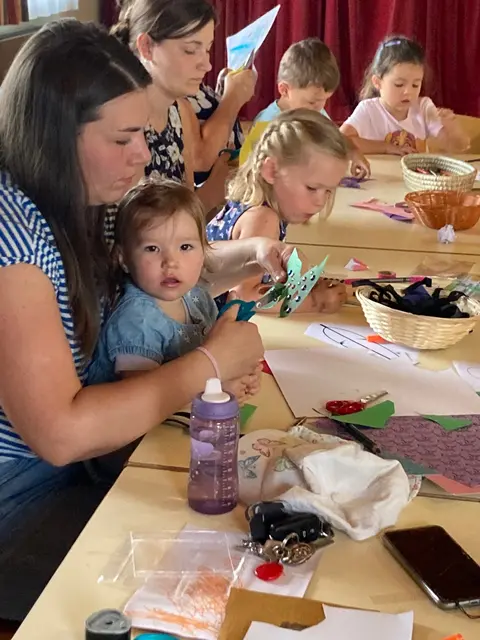 Am 28.08.2025 veranstaltete die Pfarrbücherei Esternberg einen rabenbunten Nachmittag. Habt ihr gewusst, dass Raben früher bunt waren? Doch welche Farbe war nun die einzig richtige? Ein großer Streit entbrannte. Ein plötzlicher Regen beendete den Konflikt und wusch alle Raben schwarz. Nun waren alle gleich und die bunten Farben waren verschwunden. Voller staunen lauschten die jungen Besucher und ihre Begleitpersonen dieser Geschichte. Im Anschluss verwandelten sich die 28 Kinder mit selbst gebastelten Masken in bunte Vögel. Sie zauberten auch einem schwarzen Raben ein buntes Federkleid. Die Frage nach der einzig richtigen Farbe war geklärt: Bunt ist es am besten.