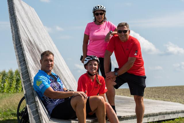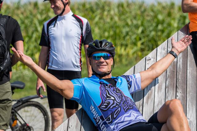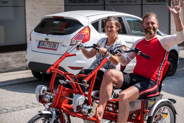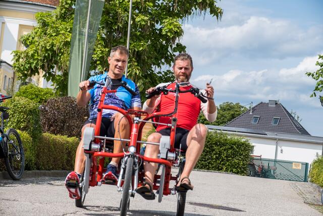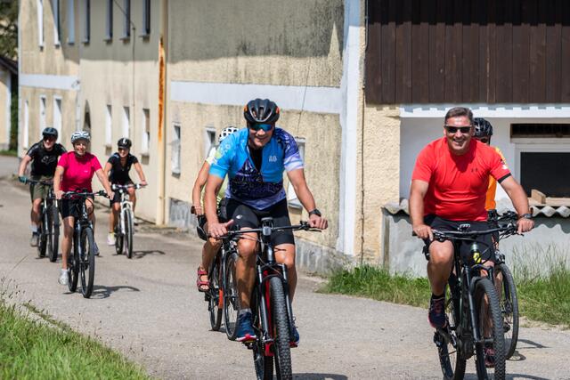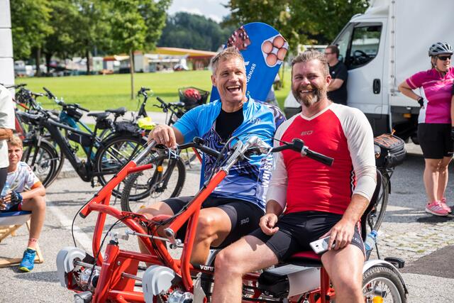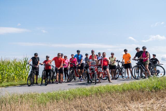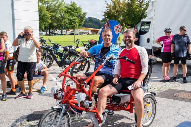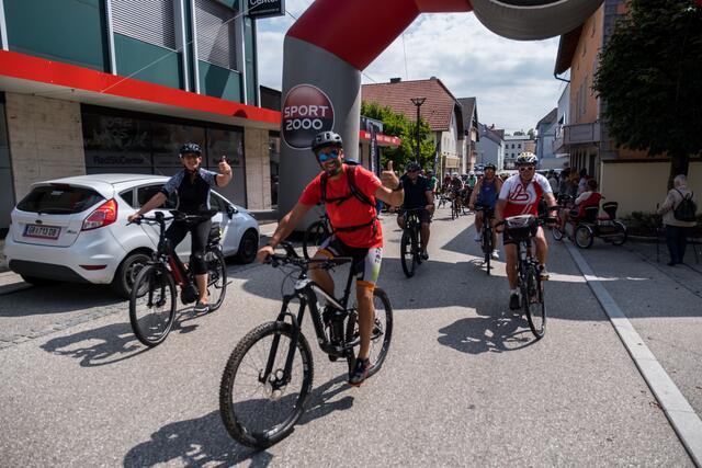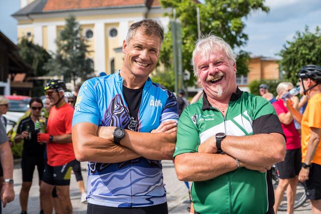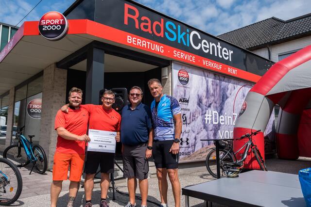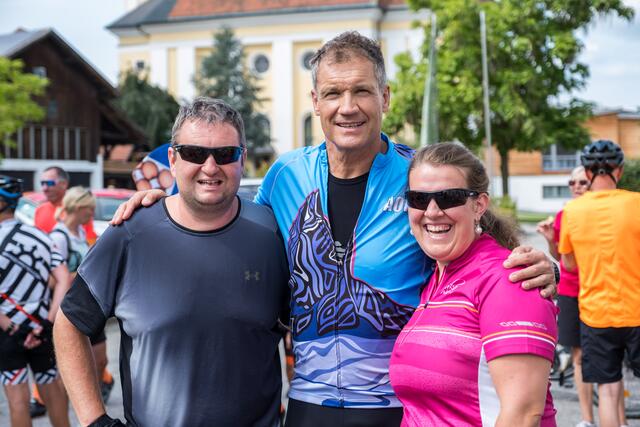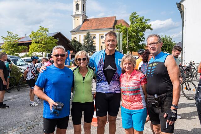 DORF AN DER PRAM. Am 20. August lud das Rad- und Skicenter von Harald und Moritz Murauer aus Neumarkt im Hausruck zum Charity-Radwandertag mit Armin Assinger. Gemeinsam mit dem Millionenshow-Moderator und Ex-Skirennfahrer starteten Radsportbegeisterte eine 45 Kilometer lange Radtour im Inn- und Hausruckviertel. Das Ziel: Geld für den Raaber Verein "Engal gibt's wiakle" zu sammeln, um das Geld schließlich der Familie Krautgartner aus Pramet (Bezirk Ried/I.) für den einjährigen Sohn Lorenz zur Verfügung zu stellen, der aufgrund eines seltenen Gendefekts unter schweren Störungen im Bewegungsablauf und der Körperhaltung leidet.
