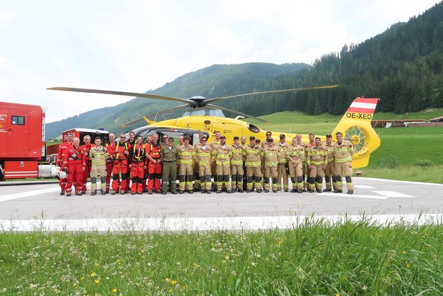Am vergangenen Samstag wurden die Feuerwehren des hinteren Zillertals für Löscharbeiten bei Waldbränden intensiv geschult. „Im Rahmen der Flugretterausbildung bietet sich dieses Training extrem gut an“, so Stützpunktleiter Stefan Pichlsberger. Neben einer theoretischen Einschulung auf den Spezialbehälter „Fliege Tirol“ der Feuerwehr Schwaz wurden die Mannschaften mittels Bergetau zum Einsatzort in unwegsames Gelände gebracht. Nachdem auch Löschmaterial mittels Flugtransport dorthin gebracht wurden, wurde die Brandbekämpfung durch den Hubschrauber mittels „Bambi Bucket“, einem faltbaren Löschbehälter demonstriert. „Das Fachwissen ist für Führungskräfte enorm wichtig. Nur so können im Ernstfall schnell die richtigen Entscheidungen und Maßnahmen getroffen werden“, sagt der Ausbildungsleiter der Feuerwehr Tux, Günther Stock. Die Waldbrände in jüngster Vergangenheit zeigen wie wichtig eine gute Zusammenarbeit zwischen den Einsatzorganisationen ist. Es war für alle Beteiligten ein äußerst lehrreicher Nachmittag.