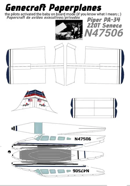 Etwas geschmacklos finde ich, dass ein Spielzeughersteller einen Bausatz einer Seneca aus Papier auf den Markt brachte. Die Seneca hat das Kennzeichen der abgestürzten Maschine (N47506). Auf dem Bausatz gibt es den Kommentar „die Piloten aktivierten den Baby an Bord Mode“.