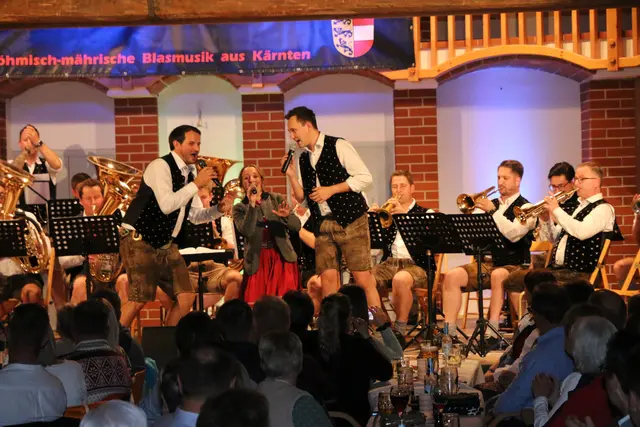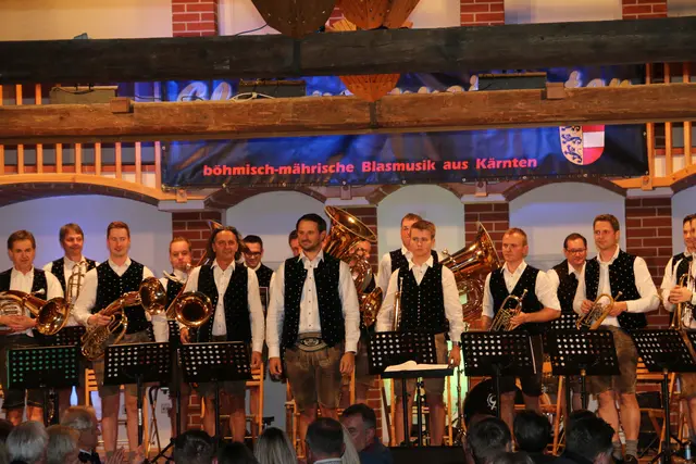Mit dem Titel "Goldene Klänge" spielten die Glocknermusikanten in einer großen Egerländer Besetzung mit ehemaligen Musikern der Glocknermusikanten in der Alten Schmelz in Grosskirchheim auf. Bei diesem Konzertabend wurden Werke von Ernst Mosch unter der Leitung von Christian Kramser der auch als Sprecher durch den Abend führte gespielt.