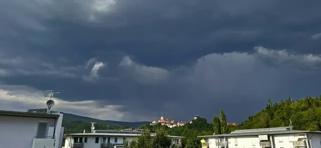 Es zogen dunkle Wolken über die Altstadt von Althofen und jetzt Regen ☔️