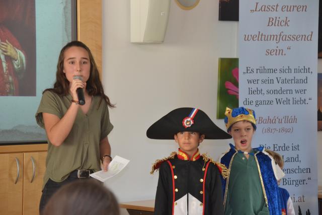 Die Zeitreise endete im Jahr 2019 und zeigte Aktivitäten, die gesetzt werden, um die Lehren, die Frieden und Einheit stiften sollen, Schritt für Schritt umzusetzen. Neben dem materiellen Fortschritt, der unübersehbar ist, gilt es, auch die geistigen Eigenschaften zu entwickeln, um dem technischen Fortschritt gerecht zu werden: Das Pflegen der geistigen Natur des Menschen, der Seele, ebenso wie dem Körper Nahrung zu bieten, in Form von Gebet und Auseinandersetzen mit den heiligen Schriften, „Herzensbildung“ die bereits bei den Jüngsten anfängt, Junioren im Alter 11-15, die ihre Dienstprojekte präsentierten, welche sie zum Wohl der Gesellschaft in Ebreichsdorf umgesetzt haben.