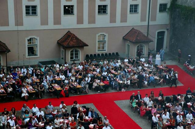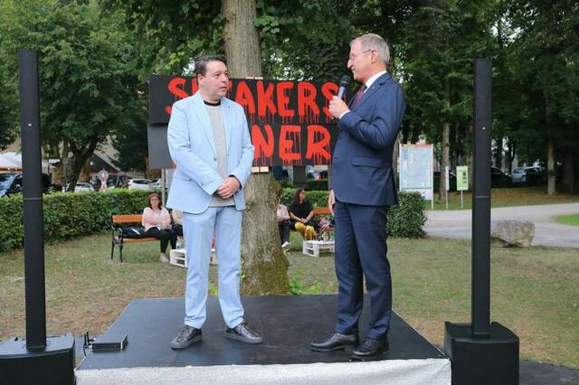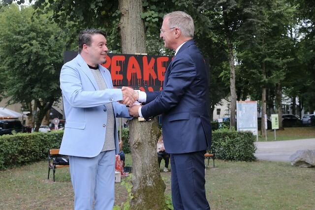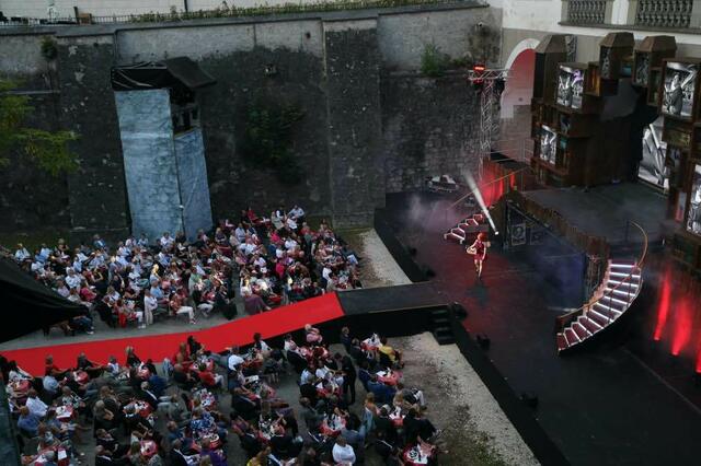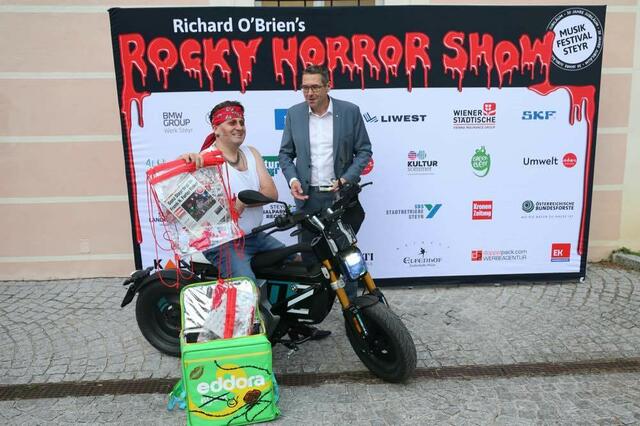Donnerstagabend hat das Musikfestival Steyr mit seiner Version der „The Rocky Horror Show“ einmal mehr bewiesen, dass es Musical kann. Mit einem perfekten Dreiklang aus Künstlern, Inszenierung und charmanten Mitmach-Einlagen für das Publikum begeistert das Musikfestival Steyr auf ganzer Linie und wird dafür minutenlang mit Standing Ovations belohnt. Allen voran Landeshauptmann Thomas Stelzer, der nicht nur regelmäßiger Premierengast ist, sondern heuer zudem in offizieller Mission die Reise nach Steyr angetreten hat. Für seinen Mut, neue Wege zu bestreiten und das kulturelle Leben der Region weiterzuentwickeln und zu bereichern, würdigte er Intendant Karl-Michael Ebner unmittelbar bevor der Vorhang für die Jubiläumssaison gehoben wurde mit dem Silbernen Verdienstzeichen des Landes Oberösterreich.