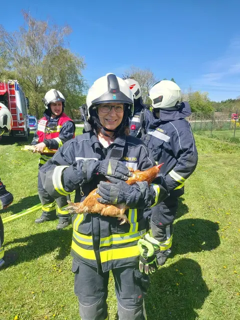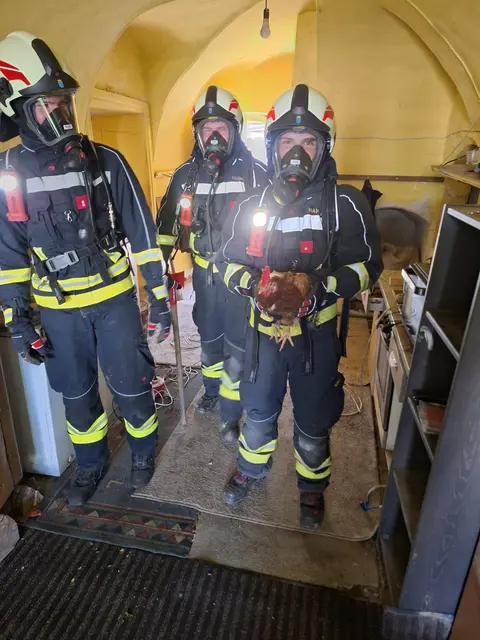 Besonders erfreulich: Eine im Gebäude befindliche Henne konnte wohlbehalten gerettet werden.