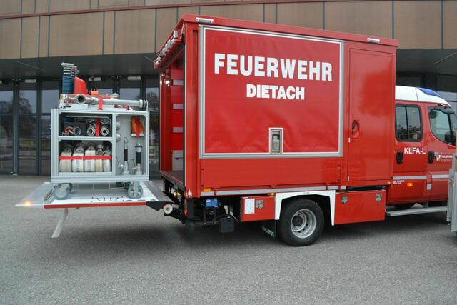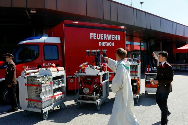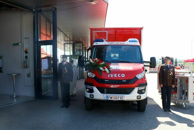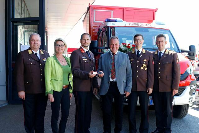 DIETACH. Im Rahmen der Florianifeier am Sonntag, 15. Mai wurde das neue „Kleine Löschfahrzeug – Logistik“ in Anwesenheit von Landes-Feuerwehrkommandant Robert Mayer und Bezirks-Feuerwehrkommandant Wolfgang Mayr durch Bürgermeister Johannes Kampenhuber an die Feuerwehr Dietach übergeben.
