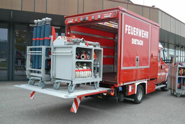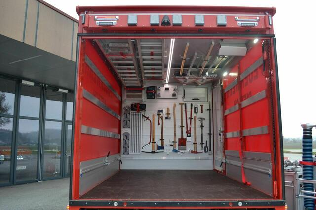 Sämtliche Einsatzgeräte im neuen Fahrzeug sind in Rollcontainern untergebracht, sodass das Fahrzeug innerhalb weniger Minuten auch für andere logistische Zwecke verwendet werden kann.