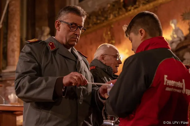 STEYR-LAND/STEYR STADT. Im Rahmen einer besinnlichen und würdevollen Feierstunde wurde am Dienstag, 16. Dezember, das Friedenslicht an die oberösterreichische Feuerwehrjugend übergeben. Die diesjährige Übergabe fand in der Basilika des Stiftes St. Florian statt. Auch Jugendliche sowie deren Betreuerinnen und Betreuer aus Steyr-Land und Steyr-Stadt nahmen an der Feier teil.
