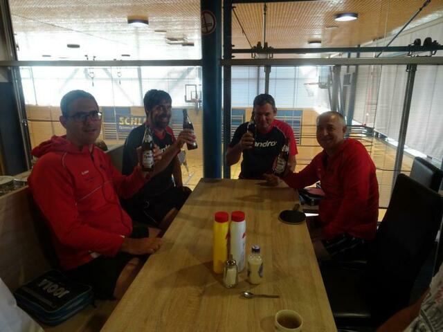 3er Mannschaften mit 4 Einzel und 1 Doppel. Ein All-you-can-eat