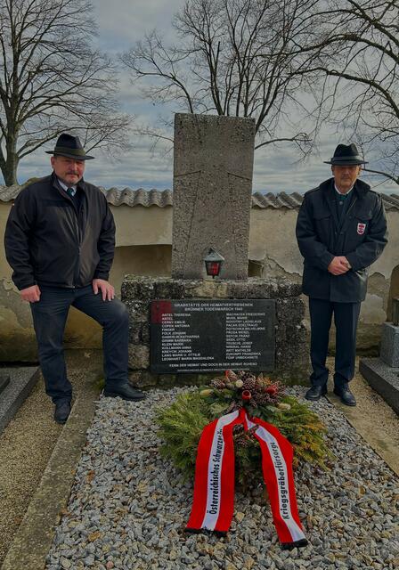 Gemeinde Wilfersdorf:      Kameraden des Österreichischen Kameradschaftsbundes, Ortsverband Wilfersdorf-Hobersdorf, besuchten traditionell auch heuer zu Weihnachten die Kriegerdenkmäler in Wilfersdorf und Hobersdorf. So auch die Grabstätte der Heimatvertriebenen vom Brünner Todesmarsch 1945 und auch das Kriegsgrab, welches an die vielen gefallenen Kameraden der beiden Weltkriege erinnern soll, am Friedhof in Wilfersdorf. Das Friedenslicht für Gefallene und Opfer Es wurden dort Kerzen entzündet...