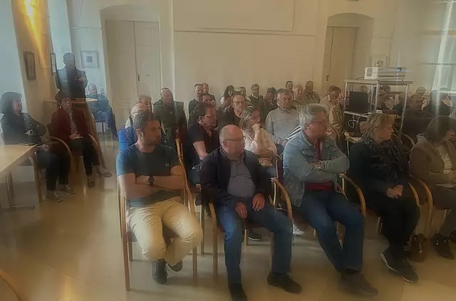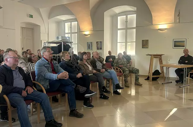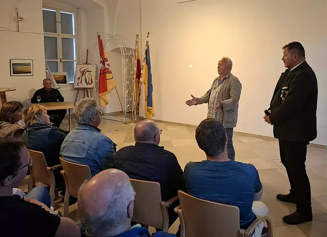 Horst Höfner, Initiator Josef Kohzina, die Gemeinderäte Marcel Lichtblau, Jan Borensky, Stefan Dersch, Elias Borensky, die Sponsoren Tanja Maier und Theodor Visnjevski, Vortragender Christoph Grein, Gemeinderäte Martina und Manfred Herrmann und Horst Obermayer. | Foto: Christine Kohzina
