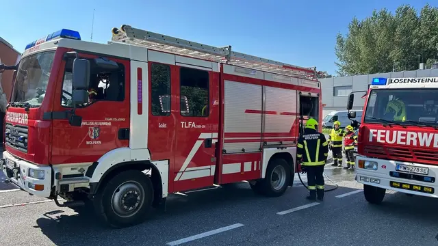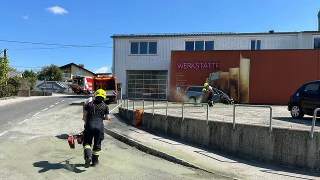 WOLFERN. Am Sonntagvormittag, 24. August, wurde die Freiwillige Feuerwehr Wolfern um Punkt 10:00 Uhr zu einem KFZ-Brand alarmiert. Wenige Minuten später erhöhte die Landeswarnzentrale das Alarmstichwort auf Brand Gewerbe, da auch eine angrenzende Firmenhalle betroffen war. Zusätzlich wurde die Feuerwehr Losensteinleiten nachalarmiert. Beim Eintreffen der Einsatzkräfte stand ein PKW unmittelbar neben einer Autowerkstatt in Flammen. Ein weiteres Fahrzeug sowie die Fassade der Werkstatt waren...