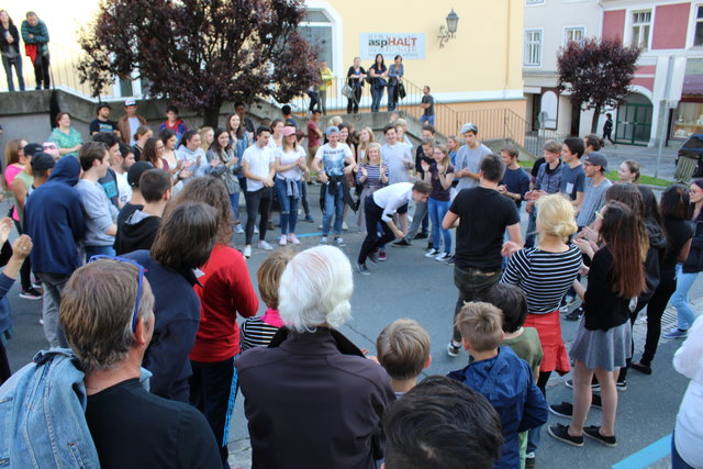 WOLFSBERG (tef). Weit über hundert begeisterte Lavanttaler tanzten vor Kurzem auf dem Wolfsberger Minoritenplatz. Der Flashmob, den Nathalie Bischof und der Verein Miteinander im Rahmen der "StadtMacher" organisierten, stand unter dem Motto "Tanzen für den Frieden". Nicht ganz der Definition eines Flashmobs entsprechend konnten Interessierte eine der Choreografien schon im Vorfeld an Hand eines Internetvideos trainieren. Der Spontanität und Ausdrucksfreude schadete das aber in keiner Weise.