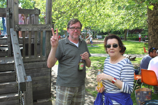 Ausnahmesportler Alfred Weber (l.) nützte ein Fest der SP-Sektion 16 für einen Weltrekordversuch im Liegestütz-Drücken. Es galt, in fünf Minuten den alten Rekord von 441 Liegestütz zu toppen. Weber, Schöpfer eines Übungsprogrammes für Schwergewichte, schaffte 445 und wartet jetzt auf seinen Eintrag ins Guinness Buch der Rekorde. Der Anlass wurde für eine Sammlung zugunsten der Krebshilfe genutzt. Nun wurde die Sammelbox mit 255 Euro von Bezirksrätin Yvonne Rychly und Alfred Weber an Michael...
