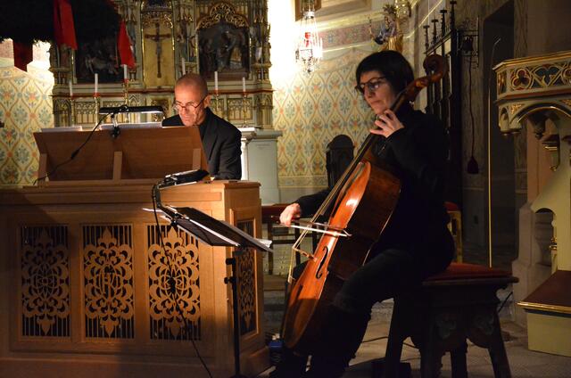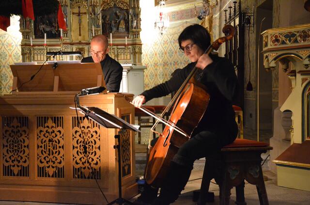 Anna Breger auf der Nyckelharfe und Aleksandar Jovanovic als Countertenor flochten mittelalterliche und elektronische Klänge zu einer harmonischen Einheit. | Foto: Schloss Landeck/Tanja W.
