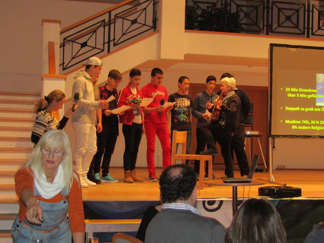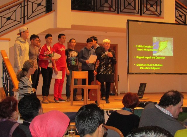 Junge Asylwerber trugen Kinderlieder in Deutsch im voll besetzten Gemeindesaal in Langenzersdorf vor. Auf enorm großes Interesse stieß die Veranstaltung "Syrien trifft Langenzersdorf", die von der Plattform für Integration von Flüchtlingen "Intitative Langenzersdorf" veranstaltet wurde. Im voll besetzten Gemeindesaal reichten die Sitzplätze bei weitem nicht aus, so viele Ortsbewohner, auswärtig angereiste Besucher und Asylwerber waren gekommen. Bürgermeister Andreas Arbesser bedankte sich bei...