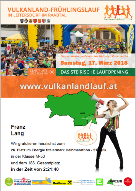Auftakt in die steirische Laufsaison. Es hat schon Tradition das Laufjahr in Leitersdorf im Raabtal zu beginnen. Man freut sich nach dem langen Winter auf Sonne und die ersten lauen Temperaturen. Aber diesmal war es etwas anders. Der Winter feiert ein großes Comeback. Und Wie!!! Es ist Saukalt im Raabtal, es schüttet, auf der Strecke ist Schlamm, also graußlich. Aber trotzdem, die Läuferinnen lassen sich nicht aufhalten. Trotz des schlechten Wetters war es ein Fest. Heri Macht und sein Team...
