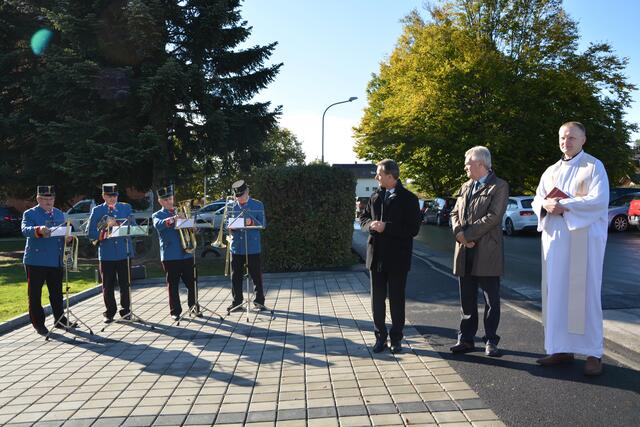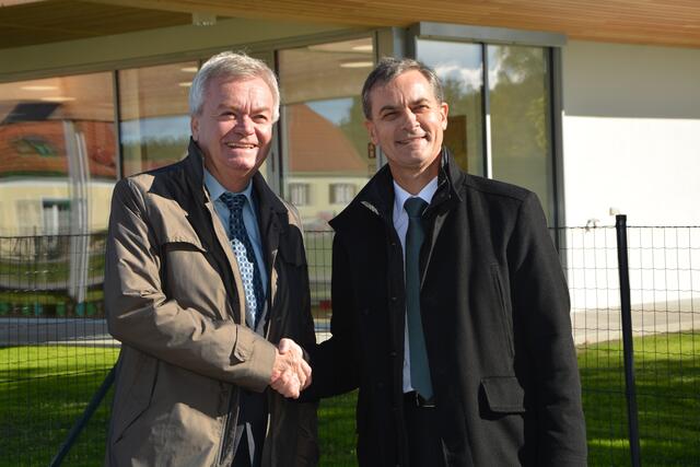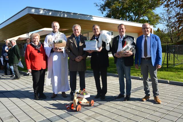 Stolz über die neue Kinderkrippe: Bürgermeister Wolfgang Dolesch und Vizebürgermeisterin Franziska Pieber mit Ehrengästen, an der Spitze Landeshauptmann-Stellvertreter Anton Lang.