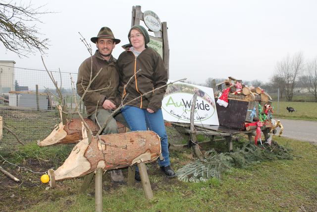 Tolle Aktion fürs BezirksRundschau-Christkind: Nicole und Roman Auinger vom Biohof Auweide verkaufen selbstgebastelte Holztiere zugunsten von Lena Kernegger aus Luftenberg. NAARN. Tolle Aktion fürs BezirksRundschau-Christkind: Nicole und Roman Auinger vom Biohof Auweide in Naarn (Stafflingerstraße 27) verkaufen selbstgebastelte Holztiere zugunsten von Lena Kernegger aus Luftenberg. Es handelt sich um ganz besondere Exemplare, nämlich um Rentierschweine, die aktuell noch vor einen Schlitten...