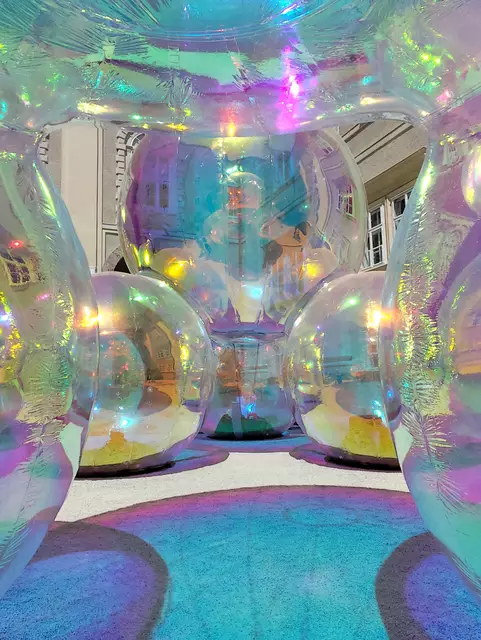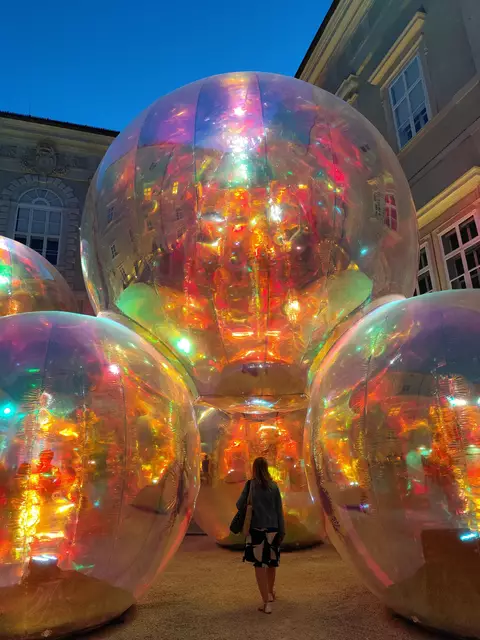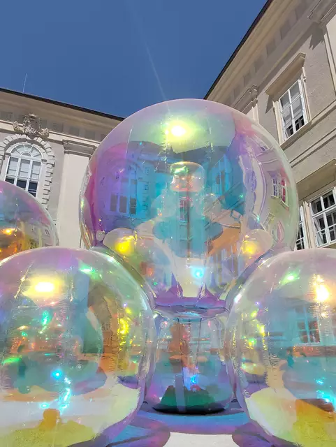 Klang- und Licht- Installation des australischen KünstlerInnen-Duos Sisu. Das begehbare Kunstwerk besteht aus farbreflektierenden Folienkugeln, die auf wechselnde Lichtverhältnisse reagieren und regenbogenartige Reflexionen erzeugen. In Kooperation mit der SZENE Salzburg. Zu Sehen/ Dienstag 10.6.25 bis Sonntag 22.6.25 / 9 bis 23 Uhr im Innenhof Domquartier in Salzburg