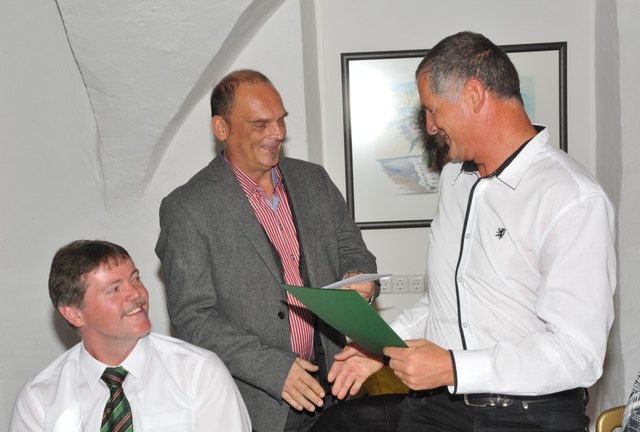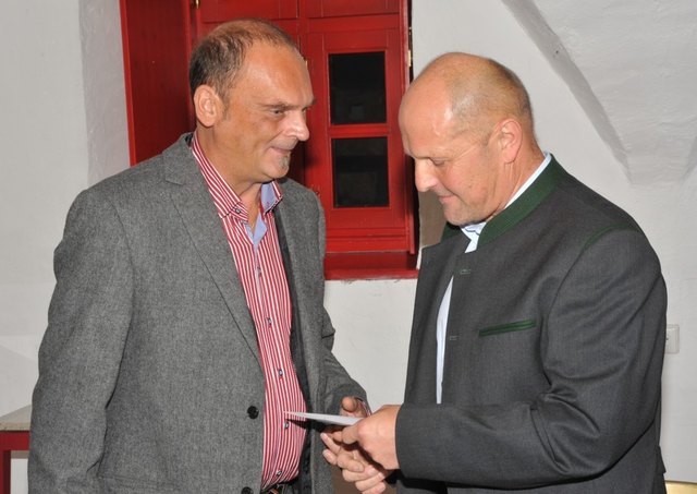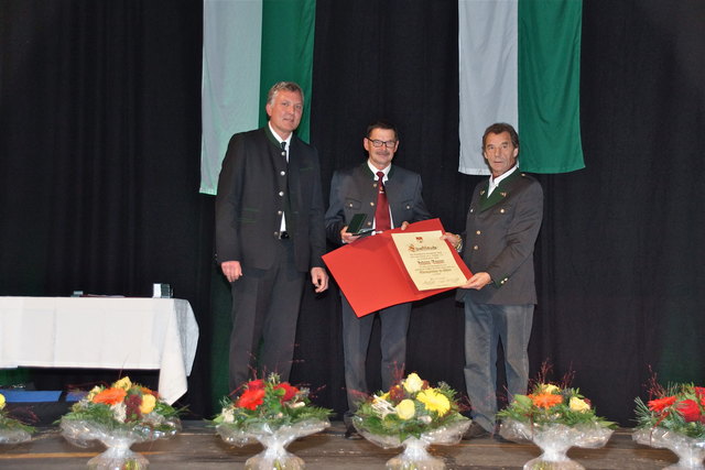 Günther Deutsch (Mitte) mit Bürgermeister Helmut Tscharre und Amtsleiter Clemens Achleitner. | Foto: Oblak