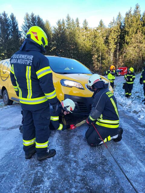 GROßRAMING. Am Sonntag, 19. Oktober, wurde die Freiwillige Feuerwehr Großraming zu einer Fahrzeugbergung beim Parkplatz Bamacher, am Fuß des Almkogels, alarmiert. Ein vollbesetztes Fahrzeug war beim Zurücksetzen von der Straße abgekommen und drohte über die Böschung zu stürzen. Mithilfe der Seilwinde des Rüstlöschfahrzeuges (RLFA) konnte das Fahrzeug rasch gesichert, geborgen und anschließend dem Lenker unbeschädigt übergeben werden. Die Zufahrtsstraße stellte sich jedoch als Herausforderung...