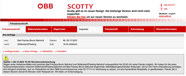 Streckenunterbrechnung zwischen Bad Fischau-Brunn und Wöllersdorf