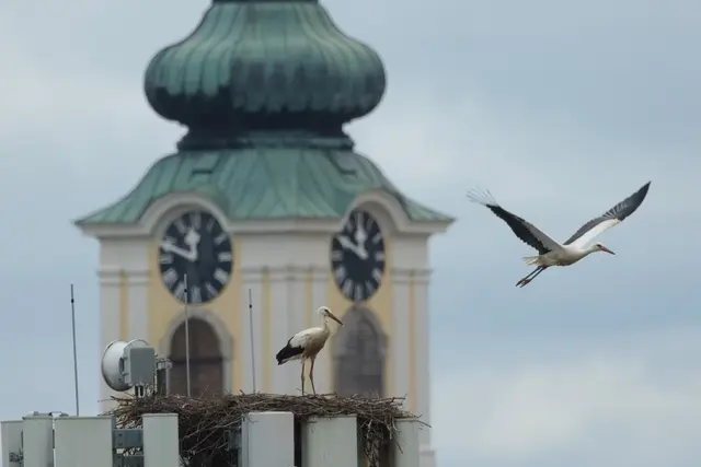 Weil der Futternachschub durch die Eltern immer kleiner wird, müssen die Tiere den Schritt in die Unabhängigkeit wagen. Sie werden ja so schnell groß! Das gilt auch für jene zwei Jung-Störche, die Mitte Mai 2025 in Pfarrkirchen bei Bad Hall das Licht der Welt erblickt hatten. Seitdem entwickeln sie sich in ihrem Nest auf dem Feyregger Handymast auf dem Silo der Firma Zorn prächtig. Doch langsam wird es Zeit, Abschied zu nehmen. Denn nach zweieinhalb Monaten All-inclusive-Verpflegung durch die...