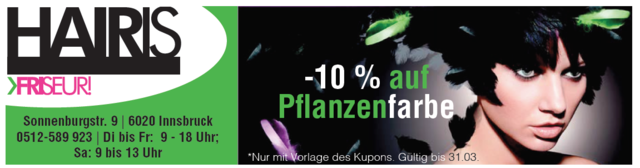 Frühling ist die Zeit für Veränderung Der Friseursalon HaIRIS ist Ihre Top-Adresse für Schnitt, Farbe und perfekt gepflegte Haare. Im Friseursalon Hairis von Friseurmeisterin Iris Thaler und ihre Mitarbeiterinnen am Sonnenburgplatz in Wilten bleibt kein Wunsch offen. Ob Typveränderung, ein klassischer Haarschnitt oder peppige Farbveränderungen – bei HaIRIS sind Sie in den besten Händen. Schonendes Aufhellen Frühling ist die Zeit der Veränderungen – und was eignet sich besser dafür, als sich die...