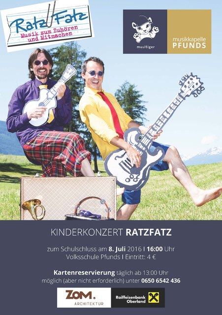 ZIRL. RatzFatz, das sind die Tiroler Musiker und Liederfinder Hermann Schwaizer-Riffeser und Frajo Köhle. Sie präsentierten am 14.9. ab 16:00 Uhr im Veranstaltungszentrum B4 in Zirl ihr wortgewandtes, lustiges und musikalisch hochwertiges Kinderprogramm. In ihren Programmen „Musik zum Zuhören und Mitmachen – für kleine und große Ohren“ verbinden sie Clownerie, Poesie und Wortwitz mit anspruchsvoller, handgemachter Musik – nicht zuletzt durch die instrumentale Vielfalt, die bei ihren Auftritten...